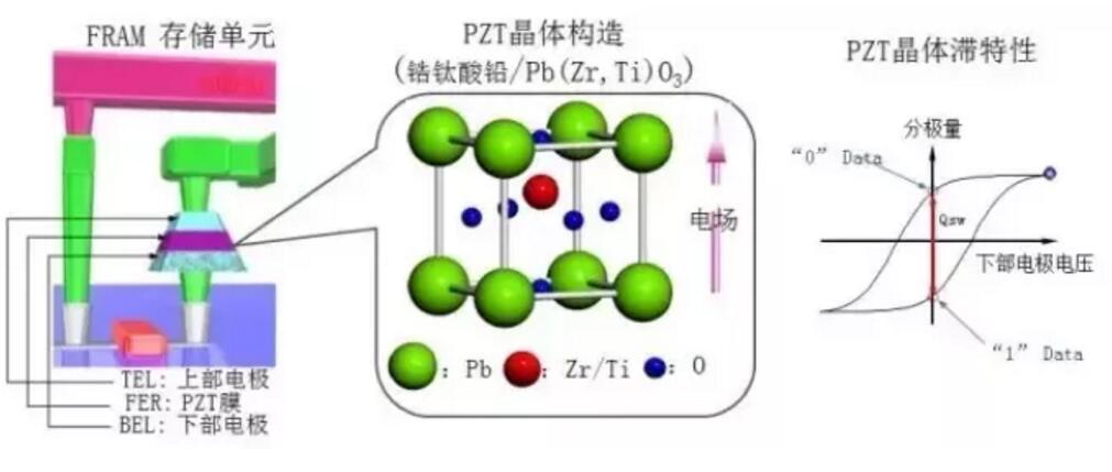 FRAM是運用鐵電材料(PZT等)的鐵電性和鐵電效應(yīng)來進行非易失性數(shù)據(jù)存儲又可以像RAM一樣操作。